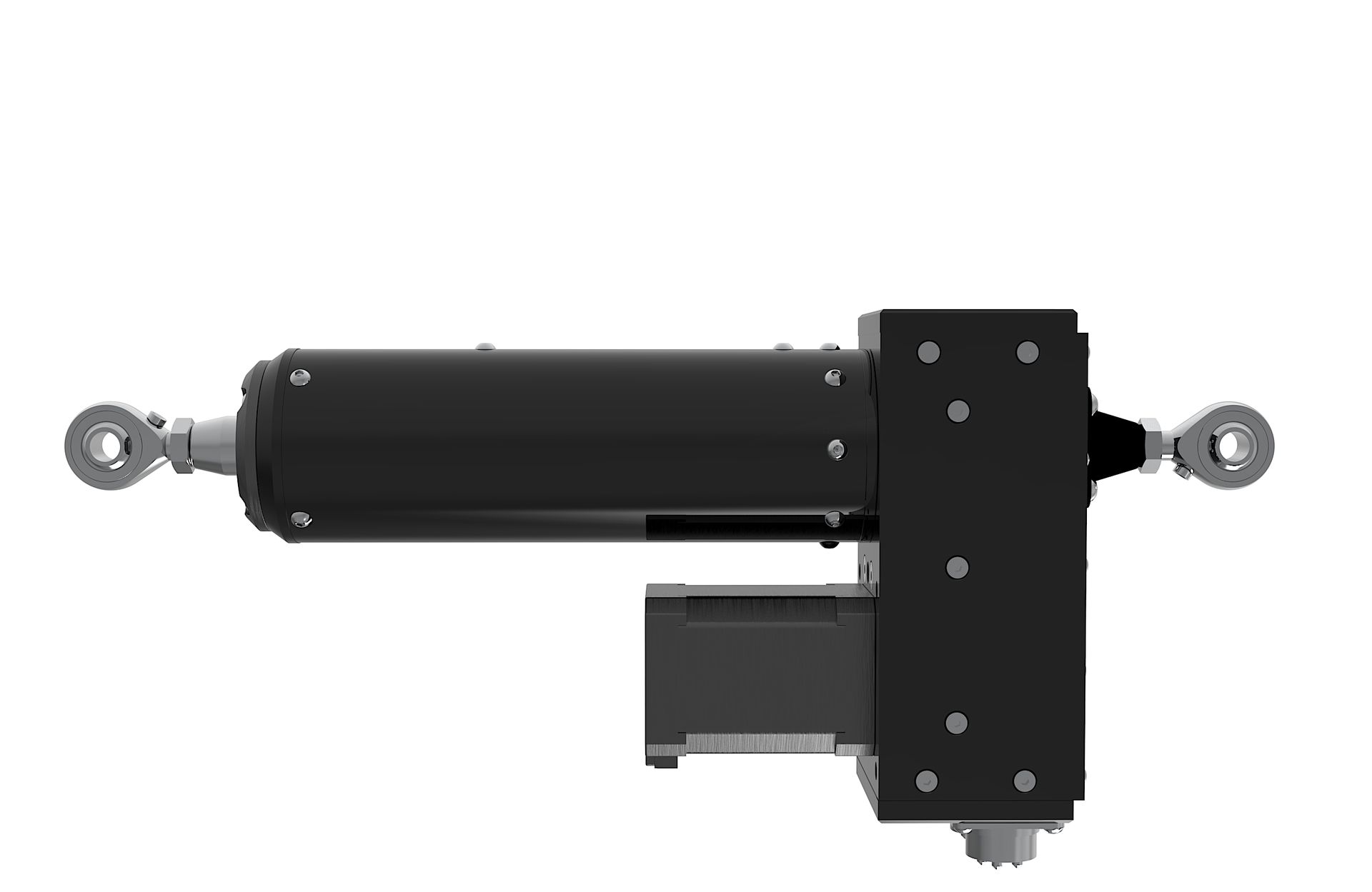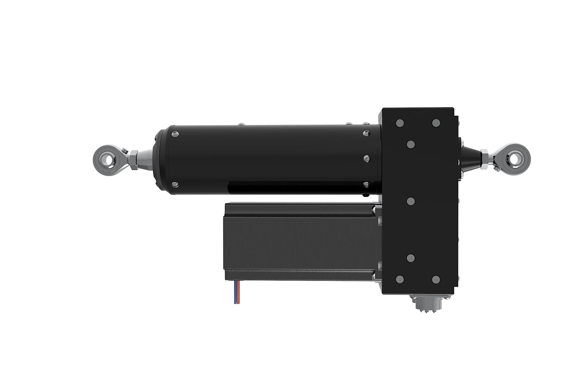 Drive is offset from the push-rod axis. This simplifies integration of larger gearboxes or higher-power motors.